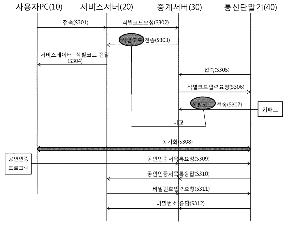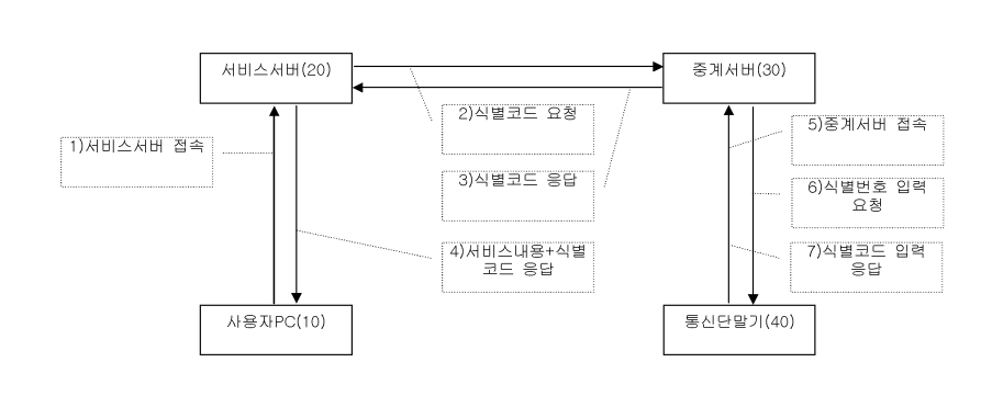 상기 서비스서버가 중계서버에 식별코드를 요청하고,