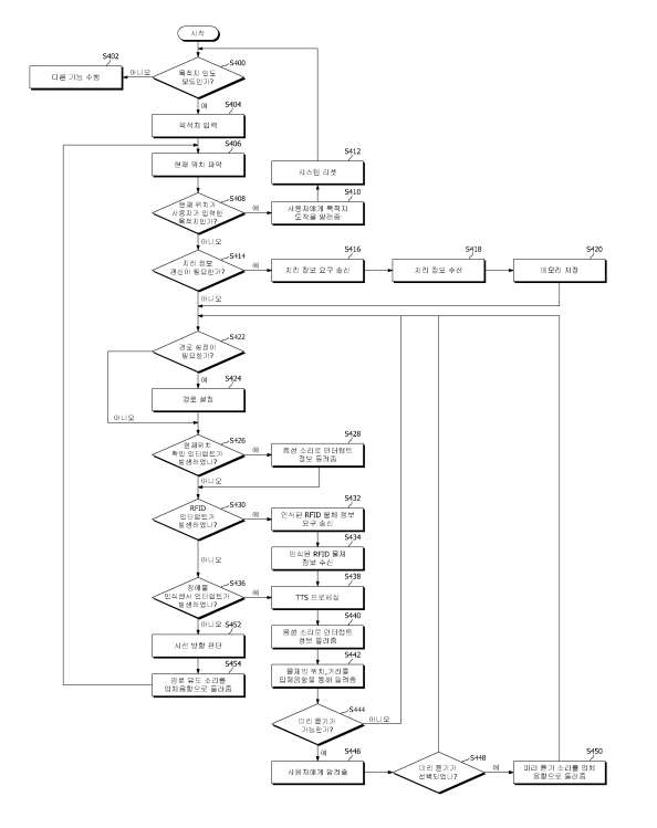 도4는 본 발명의 실시예에 따른 시각장애인을 위한 길안내 서비스 방법을 설명하기 위한 흐름도.