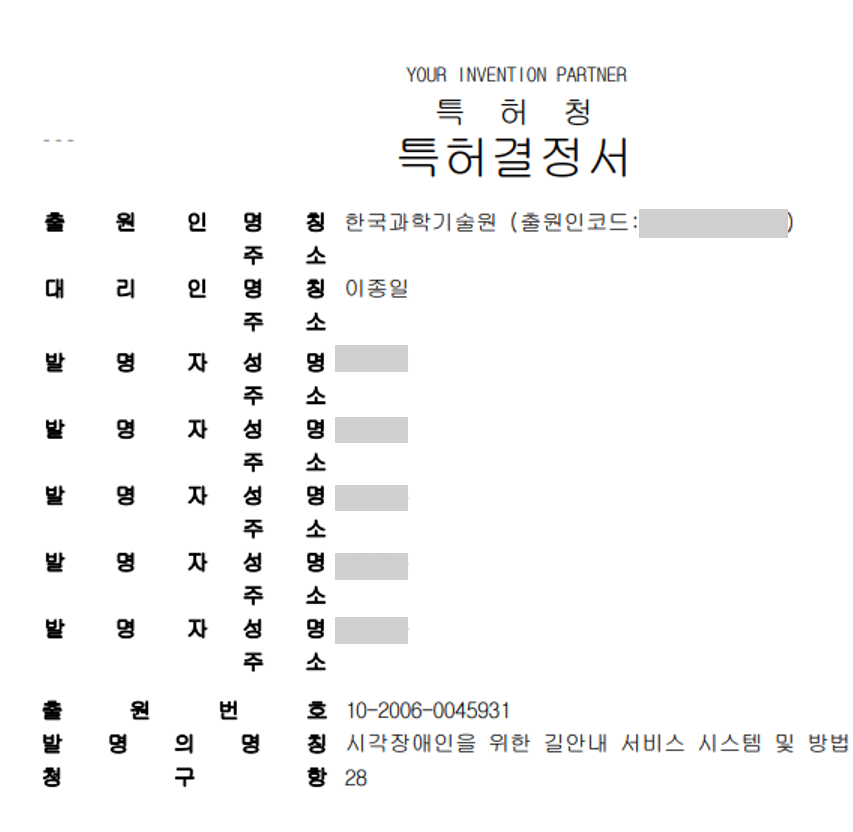 이번에 소개해드릴 BM특허등록 사례는 GPS, 정보제공 관련 기술분야에서 시각장애인을 위한 길안내 서비스 시스템 및 방법에 관한 것입니다.