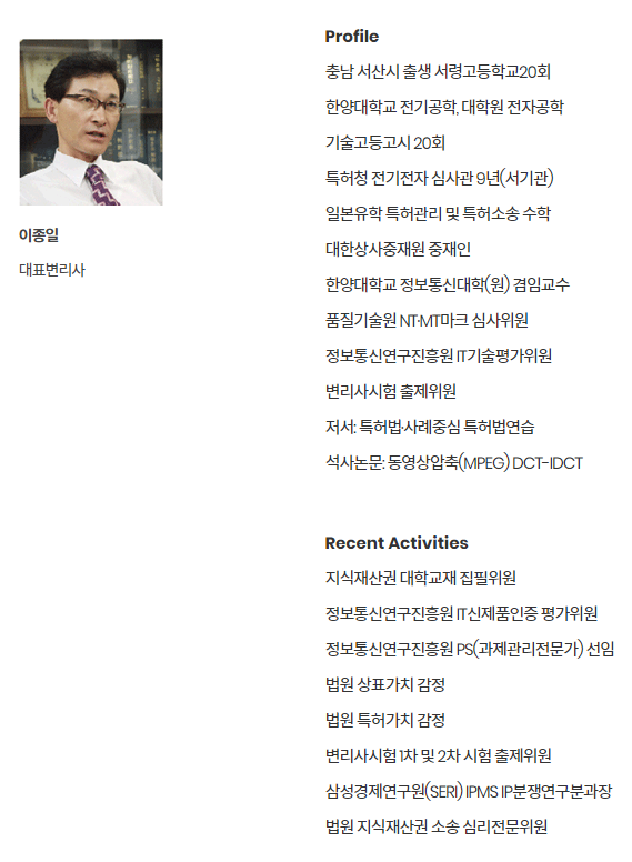 퍼스트마크를 운영 서비스하는 대일국제특허법률사무소는 이종일 대표변리사(한양대 대학원 전자공학 전공, 특허청 정보통신분야 심사관)를 비롯하여 특허엔지니어의 70%가 전자/정보통신을 전공한 IT분야 전문가로 구성되어 있습니다.